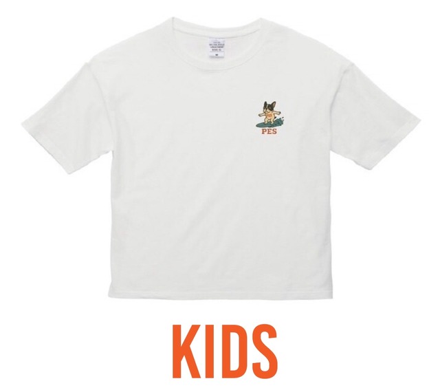 完全受注生産です‼️‼️‼️ 【波乗りPES Tシャツ KIDS】 100〜160 ¥3,200円 フロントはシンプルに「PES」のロゴだけ。 バックにはサーフィンを楽しむフレンチブル「PES」を大胆にプリント! さりげなさと遊び心をあわせ持ったデザインです。 ◾カラー:ホワイト サンドベージュ ライトブルー ライトピンク PESといっしょに、夏をもっと楽しく‼️